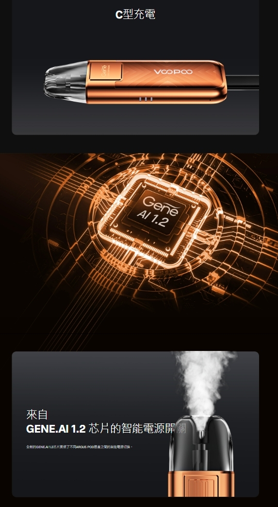 GENE.AI 1.2 晶片,能智能調節功率,根據不同煙彈自動提供最佳性能,確保穩定且優質的風味體驗。
