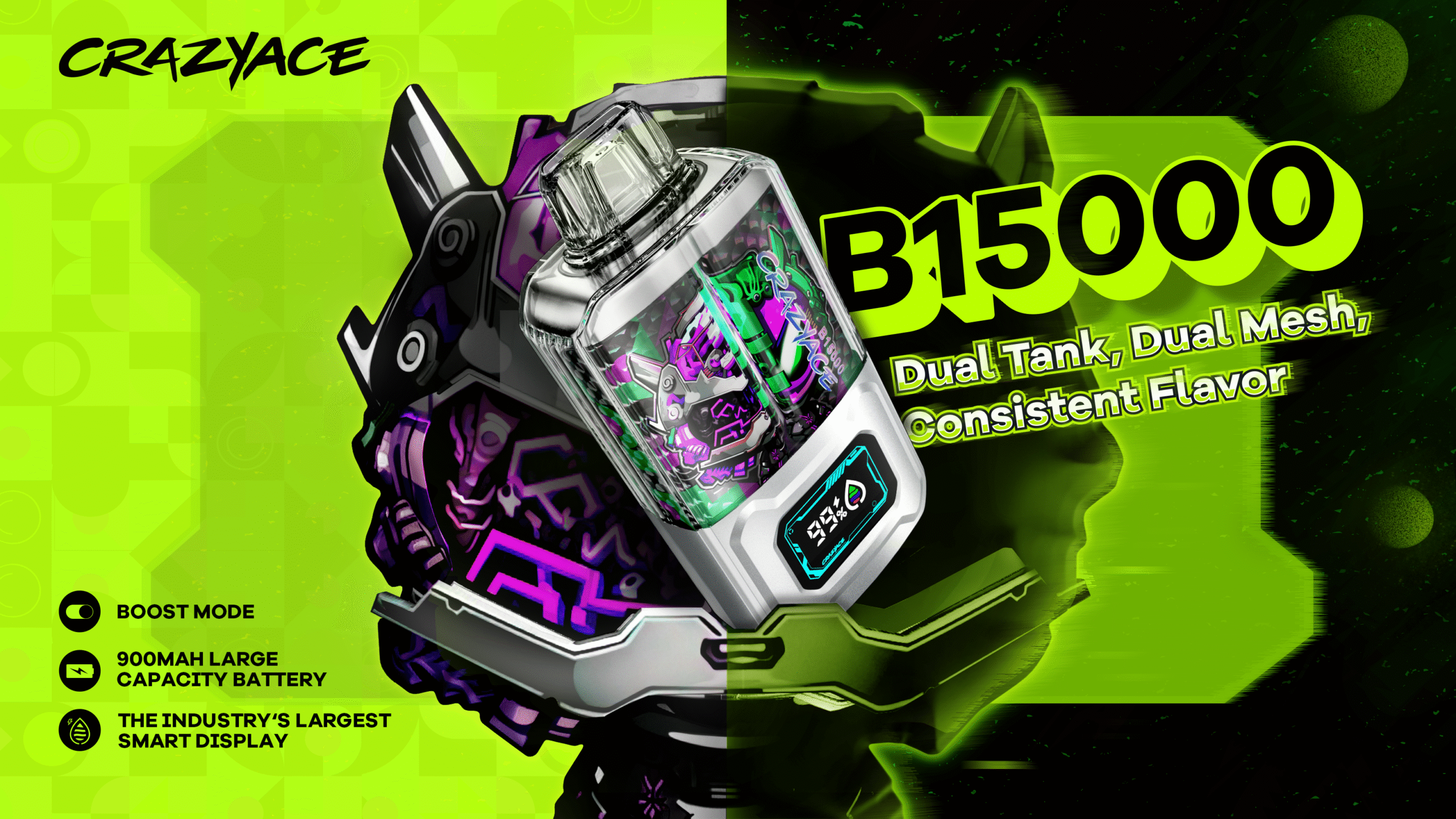 選擇 CRAZYACE B15000,您將擁有一款高效能、長續航的電子煙設備。其穩定的性能和多樣化的口味選擇,讓每一口都成為享受。