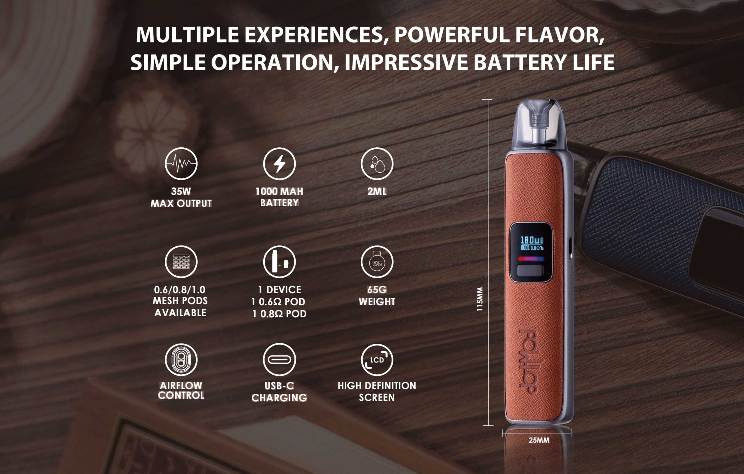 - ⚡ 最高 35W 輸出功率:釋放濃郁風味與飽滿煙霧,精準支援多種霧化芯。