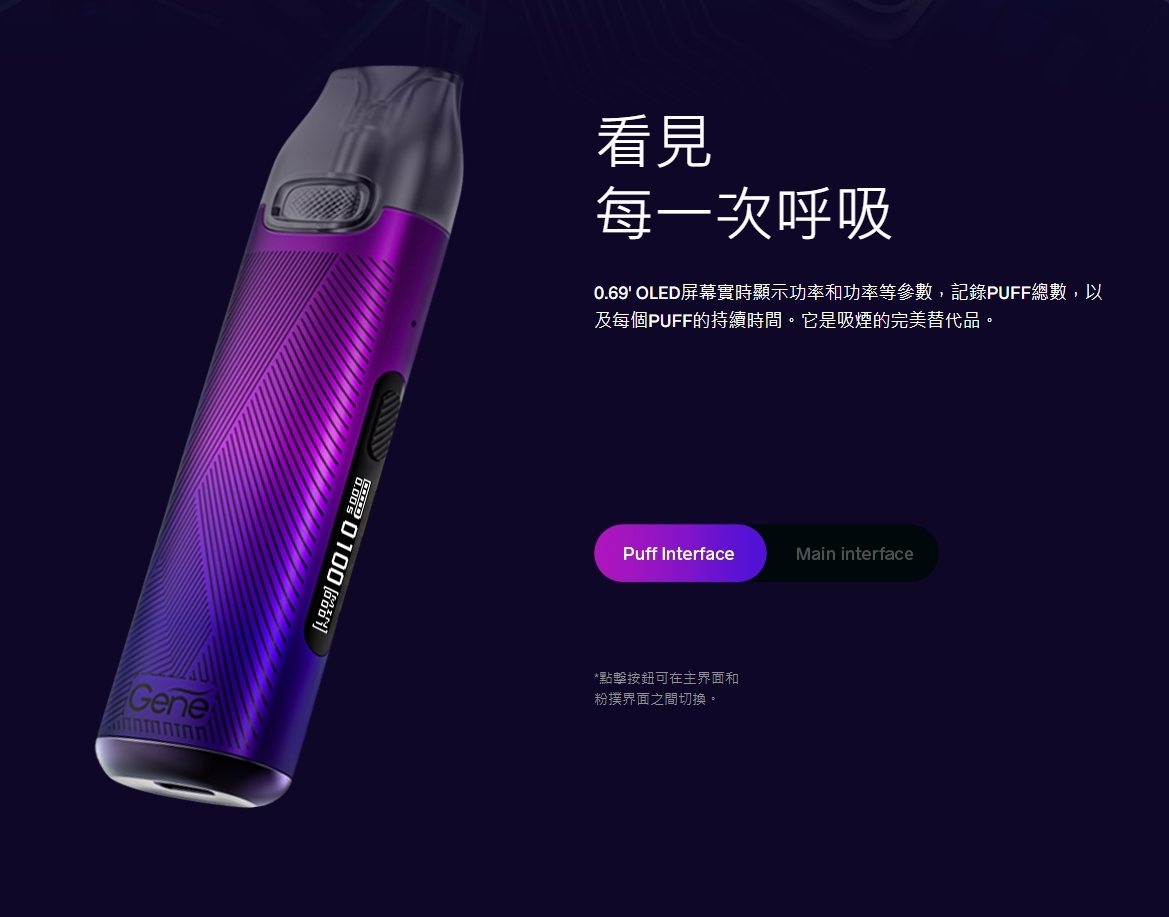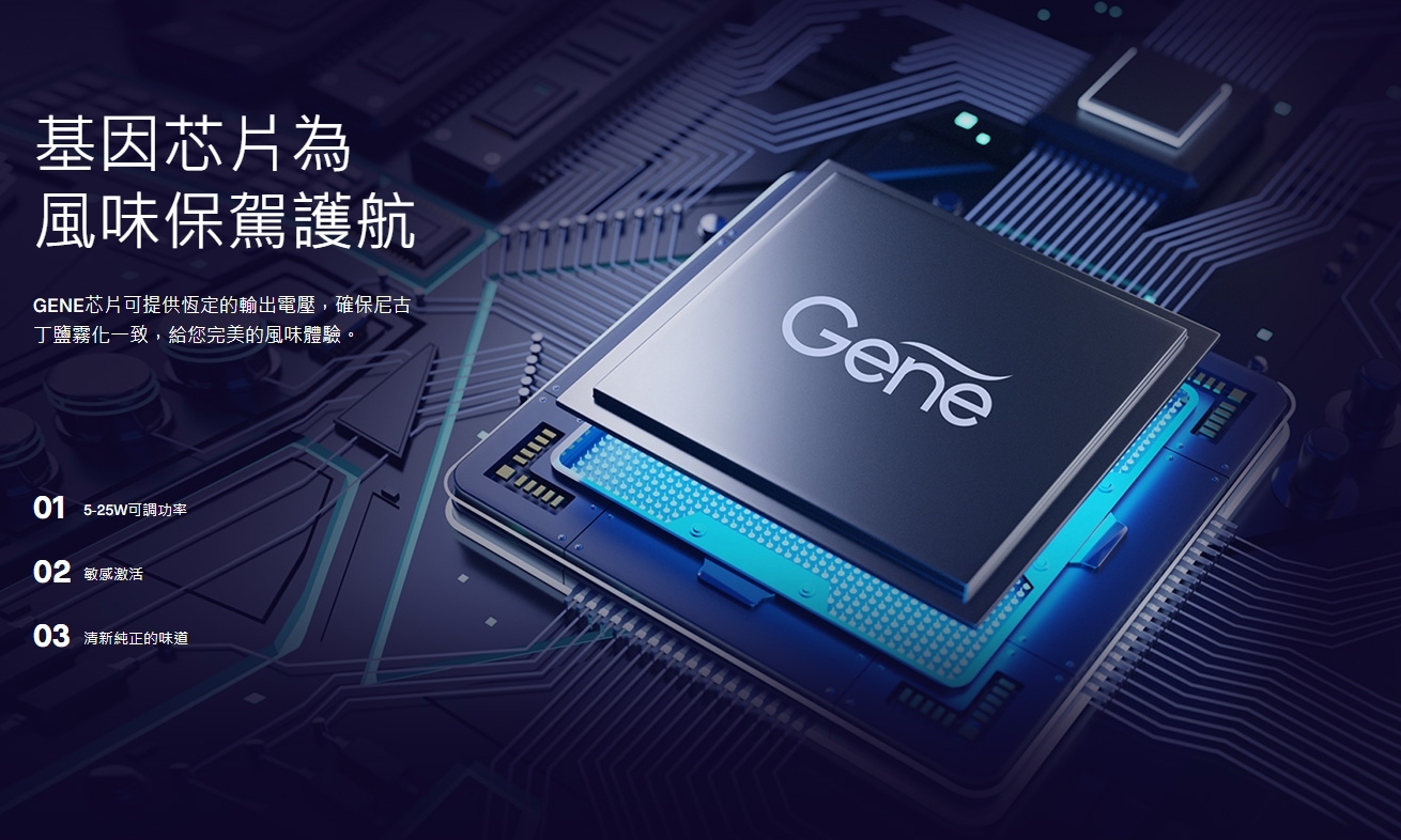 - GENE 晶片 提供恆定輸出,保證穩定霧化與一致風味
